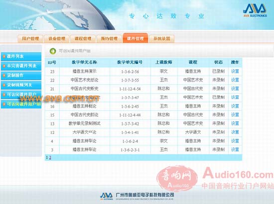 錄播系統(tǒng)是一種將教學(xué)現(xiàn)場(chǎng)的視音頻信號(hào)和VGA信號(hào)進(jìn)行同步整合錄制,并生成標(biāo)準(zhǔn)化的流媒體文件,可用來(lái)同步直播、存儲(chǔ)、后期編輯或點(diǎn)播的設(shè)備。這里我們以國(guó)內(nèi)知名的錄播廠商奧威亞科技(以下簡(jiǎn)稱AVA)為例,其自主研發(fā)生產(chǎn)的AVA錄播系統(tǒng)及視頻資源管理平臺(tái)對(duì)網(wǎng)絡(luò)課堂的構(gòu)建有獨(dú)特的優(yōu)勢(shì)。