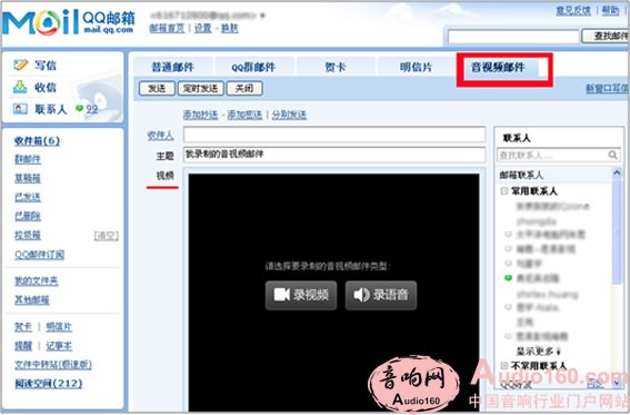 三.點(diǎn)擊如下圖的“音視頻郵件”選項(xiàng),進(jìn)入編輯界面。