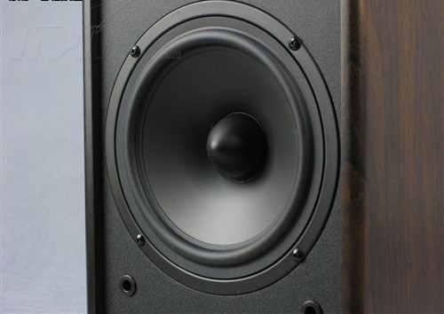 麥博音箱整體偏暗的木色,既古樸又有增添了一分神秘感。音箱的箱體采用了原木貼皮的設(shè)計(jì),木質(zhì)紋路清晰可見。箱體前障板罩上了一層黑色的紗網(wǎng),增強(qiáng)了外觀的整體感。箱體下部還有一個(gè)較小的音量調(diào)節(jié)旋鈕,它在電源接通的情況下會(huì)亮熒光綠的小燈,使用起來手感較好。