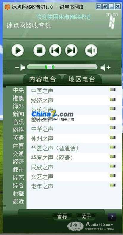 互聯(lián)網(wǎng)絡(luò)把我們帶入了一個(gè)嶄新的世界,所有的聽覺和視覺感受都變成數(shù)字化了,這使得我們可以無比清晰地享受遙遠(yuǎn)國(guó)度傳來的樂音,就如同在自己的房間里播放CD一樣,再也不用被空氣中的電波干擾所煩擾了,同時(shí)我們對(duì)節(jié)目的選擇性以爆炸性的方式增長(zhǎng)了。這就是數(shù)字媒體播放器-網(wǎng)絡(luò)收音機(jī)給我們帶來的不能言盡的好處。打開你的電腦就可以收聽互聯(lián)網(wǎng)上大量免費(fèi)的網(wǎng)絡(luò)廣播電臺(tái)。一般來講,通常的FM和數(shù)字廣播都會(huì)在網(wǎng)絡(luò)上廣播。所以,這一點(diǎn)會(huì)給你帶來不可想象的變化。還在聽嘈雜的短波廣播?換個(gè)方式收聽數(shù)字化的廣播吧,像CNN、BBC、NPR和Bloomberg這樣著名的廣播電臺(tái)在網(wǎng)絡(luò)上都有廣播。