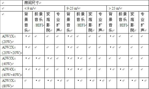 對(duì)于家庭影院和 HIFI 工程(例如主聽室),建議配合使用一個(gè)低音音箱,低音音箱與AIWX系列音箱的分頻點(diǎn)設(shè)置在100HZ,其他的房間則可根據(jù)需要選擇是否使用低音音箱。