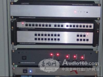 視頻會議的重要組成部份是視頻顯示及信號切換系統(tǒng),我們?yōu)檎麄系統(tǒng)配置AVCONE攝像球和AV、VGA矩陣,進行顯示信號采集和切換。將遠程傳回的畫面信號以及攝像球與手拉手所采集的信號,通過這兩臺矩陣分配,通過奧圖碼投影機將畫面投放到屏幕上。