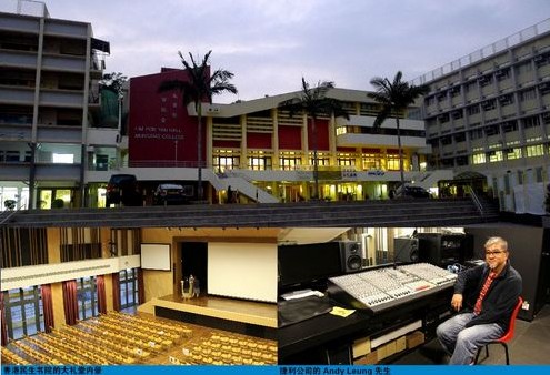 多年以來,校舍經(jīng)歷了多次后續(xù)修繕和擴建。1969年1月,香港民政事務(wù)局Sir Ronald Holmes在第二次世界大戰(zhàn)后他對香港的重建發(fā)揮了不可或缺的顯著作用,其中一個重要決策就是提議開辦一個全新的、可容納1000人的大禮堂。這個叫做Lim Por-yen Hall的禮堂于1982年為人所知,是學(xué);顒拥暮诵膱鏊,早會時學(xué)生將在這里集合,同時也會在此開展例行會議、教會服務(wù)、戲劇和音樂制作。現(xiàn)在民生書院中學(xué)部學(xué)生人數(shù)約為800人,小學(xué)部和幼兒園部的學(xué)生人數(shù)分別為1100人和500人,這三個學(xué)部共享同一個禮堂,校長認為現(xiàn)在是時候?qū)ΧY堂的技術(shù)設(shè)施進行全面檢修。于是在2012年期間,校方針對大禮堂的音頻、視頻和燈光設(shè)施的改造方案對外招標,在眾多公司投標過程中,香港捷利專業(yè)電聲工程有限公司一舉中的。