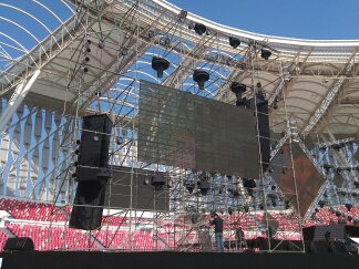 這場演出PLA譜萊聲使用了ZSOUND LA212雙12吋線陣列音箱36只、LA110單10吋線陣列音箱12只、SS2雙18吋超低音箱16只、CM15單15吋同軸返送音箱12只等等,在舞臺上以環(huán)繞式布局布置,還在舞臺兩邊一線陣列形式布置著,這樣不僅能達到聲音的集中擴散,而且還能使聲音不會因為受到寒風而改變聲音原來的音頻!還使用了Sennheiser ew 300 IEM G2無線入耳式監(jiān)聽系統(tǒng)、PLA MS01話筒分配器、PM5D數(shù)字調(diào)音臺等等設備。各設備各施其職,再加上PLA譜萊聲專業(yè)的技術人員的靈活操作,保證了演唱會以精彩演出順利畫上句號!