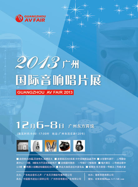 2013廣州國際音響唱片展昨日在廣州東方賓館開幕,音響音樂愛好者又一次迎來熱切期待的開心節(jié)日。這個一年一度的音響文化活動由廣東電臺音樂之聲、廣東天天精彩傳播有限公司主辦,今年已經(jīng)是第20屆。之前18屆都在廣州的白天鵝賓館舉行,從去年開始移師東方賓館,是國內(nèi)最大型的國際級別音響展覽。