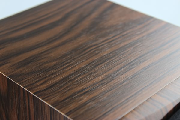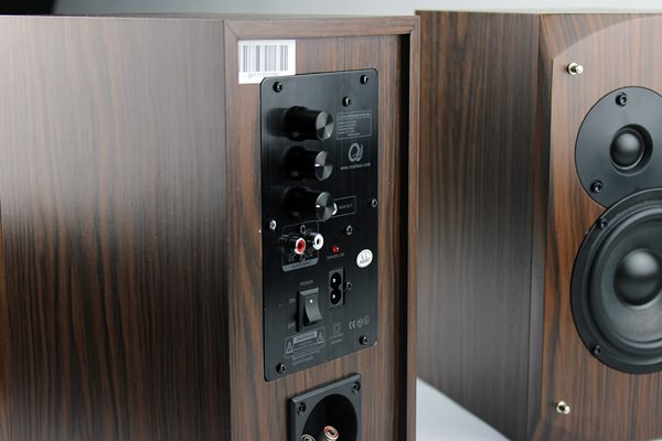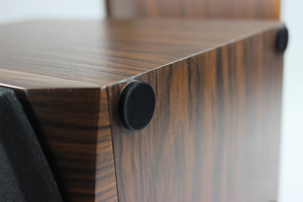 初看SVEN,就發(fā)現(xiàn)這是一款沿用傳統(tǒng)有源箱設(shè)計思路的產(chǎn)品,無論是外形還是配色,都沒有太多花哨的東西,顯得沉穩(wěn)端莊。箱體采用常規(guī)MDF板材制作,表面以木紋PVC貼皮裝飾,工藝精良,貼面平整光滑。前障板上下部都做了大圓角斜面處理,使低調(diào)之中也不顯單調(diào)。SVEN采用前倒相設(shè)計,雖然倒相管的前置與后置本身并不會對音質(zhì)產(chǎn)生本質(zhì)影響,但放于前方,可以一定程度上避免與墻體距離過近或過遠(yuǎn)對低頻產(chǎn)生的不良影響,給用戶擺放的自由度更高。