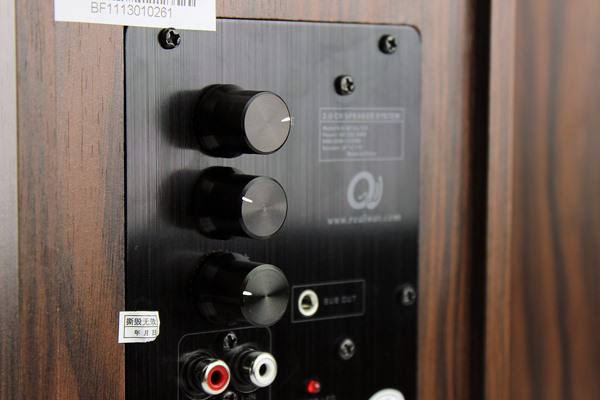 與大多數(shù)多媒體音箱一樣,SVEN的散熱板同樣作為背板的一部分。前級提供高低音與音量調(diào)節(jié),用戶可根據(jù)自己的聽音需求進(jìn)行相應(yīng)的調(diào)節(jié)。在背板上,我們還能發(fā)現(xiàn)預(yù)置了一個獨(dú)立的低音輸出接口,用于連接外置的有源超重低音,對于部分想提升低頻表現(xiàn)而要組建2.1系統(tǒng)的朋友,這樣的接口是十分必要的。