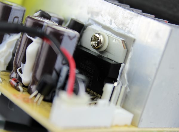 有源音箱作為一個整體,不單單只看單元的配置,與其搭配的電路也十分重要。優(yōu)質(zhì)的有源音箱講求的是合理的搭配,工程師可以通過電路的修正,讓箱子的聲音達(dá)到一個預(yù)定的高度。SVEN的功放電流放大芯片采用ST的TDA7265,設(shè)計功率為25W*25W(8Ω),在SVEN上使用了一塊,分別驅(qū)動主副箱工作。