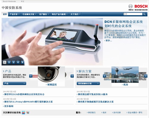 從信息模塊方面來(lái)看,博世安防通訊系統(tǒng)新版官方網(wǎng)站網(wǎng)站劃分為“產(chǎn)品目錄”、“行業(yè)解決方案”、“客戶服務(wù)”、“特色產(chǎn)品與新聞”以及“關(guān)于我們”六個(gè)模塊。 “產(chǎn)品目錄”模塊可以滿足客戶查詢特定的產(chǎn)品需要。在“行業(yè)解決方案”方面,我們更為專(zhuān)注于機(jī)場(chǎng)、城市監(jiān)控、軌道交通、體育館和會(huì)展中心、能源和公共事業(yè)以及其他等六大類(lèi)。而原來(lái)與產(chǎn)品目錄并列的“特色技術(shù)和產(chǎn)品”,則與“新聞資訊”、“活動(dòng)訊息”等同屬“特色產(chǎn)品與新聞”單元下,使客戶更為方便地對(duì)博世安防新產(chǎn)品與新聞?dòng)幸粋(gè)全面的了解。另外值得一提的是,新網(wǎng)站還增添了“關(guān)注我們”欄目,可以更快速地關(guān)注博世安防通訊系統(tǒng)的新浪微博,以及瀏覽優(yōu)酷上的視頻,力求實(shí)現(xiàn)多媒體渠道的信息鋪設(shè),為用戶提供更好的服務(wù)與資訊。