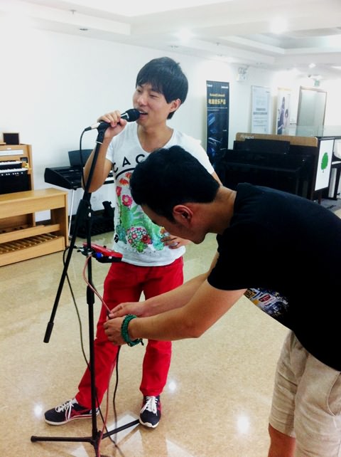 | 前言: 2013年8月12日,創(chuàng)作了2013快樂男聲主題曲《追夢赤子心》的國內(nèi)知名英倫風(fēng)樂隊(duì)——GALA樂隊(duì)的主唱蘇朵,來到Roland羅蘭公司,了解BOSS 人聲效果器VE-5的功能及使用。Roland技術(shù)人員為他提供了全面的技術(shù)支持。 |