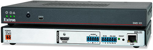 “SMD 101 以其高級的視音頻信號處理、便于集成的控制選項有別于其它解碼器,”Extron 銷售及市場部副總裁 Casey Hall 談到!爱斄髅襟w應用集成到視音頻系統(tǒng)時會遇到諸多挑戰(zhàn),SMD 101 的這些特性能為此提供簡單的解決方案,并使其能兼容各種不同的視音頻流媒體應用。”