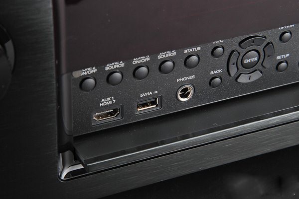 整個(gè)AVR-X系列的外型都差不多,最大不同在于中央部分多了一個(gè)滑蓋設(shè)計(jì),因此AVR-X4000蓋上滑蓋以后就看不到面板上的控制按鍵與輸入端子。