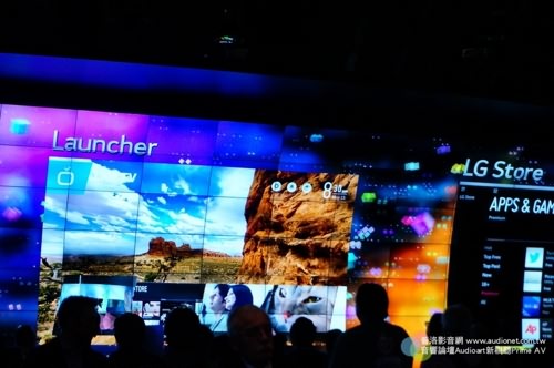 LG一進門就是超大的電視墻,隨時播放一般影像與3D影像.