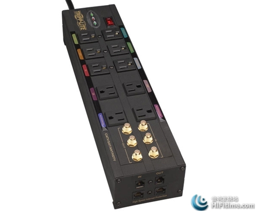 美國(guó)品牌Tripp Lite有著專門(mén)為家庭劇院系統(tǒng)設(shè)計(jì)的電源訊號(hào)濾波器系列Isobar,系列中的HT10DBS全機(jī)采用金屬外殼,具有隔絕外界雜訊的效果外,金屬材質(zhì)的機(jī)箱也較耐用.HT10DBS配載了10各電源插孔,提供了3840焦耳的突波保護(hù),以避免破壞性的電涌,以及過(guò)濾破壞性線路噪音.另外HT10DBS還具備了3組同軸保護(hù)、一組電話/數(shù)據(jù)機(jī),與一組網(wǎng)路的突波保護(hù),因此突波不僅只是針對(duì)音響器材部分.