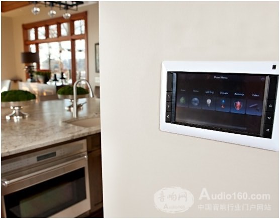 通過(guò)廚房的嵌墻觸摸屏進(jìn)行全宅智能控制