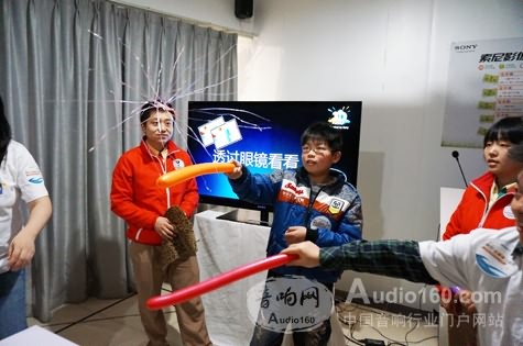 眼前這一幕發(fā)生在北京的一家索尼直營店中。今天,索尼在華集團(tuán)公司“志愿者公益周”項(xiàng)目在全國啟動(dòng)的日子。一早店里面就迎接來了20位來自北京昌平新源學(xué)校的孩子們。他們被邀請(qǐng)來上一堂與平時(shí)不一樣的“科學(xué)課”。和平時(shí)在學(xué)校上課不同,今天孩子們沒有課本,取而代之的“教學(xué)用品”竟是稀奇古怪的科學(xué)試驗(yàn)道具,有趣的自制玩具材料,甚至有最先進(jìn)的智能手機(jī)、電視、平板電腦……在這里孩子們可以學(xué)習(xí)到3D成像的原理,用氣球自制氣球火箭,還能用學(xué)習(xí)靜電魔術(shù),體驗(yàn)智能手機(jī)的虛擬現(xiàn)實(shí)技術(shù)的夢幻影像?傊,這里就是一個(gè)奇妙的科學(xué)課堂。