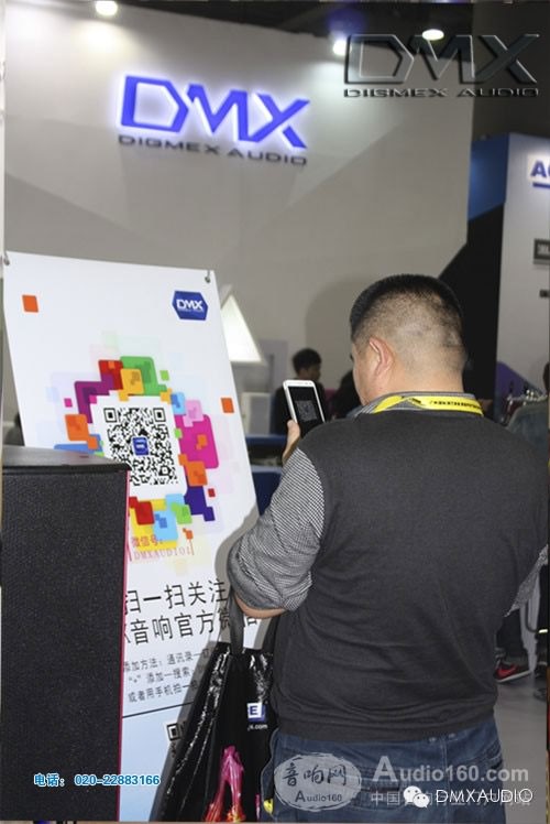 帥鍋正拿著手機(jī)掃描“DMX”官方微信二維碼