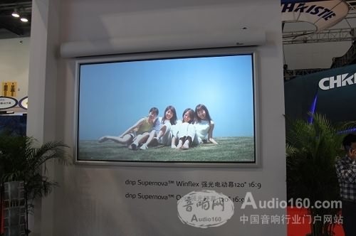 dnp展臺展示的光學正投軟幕也吸引了大家的目光,此次展出的Supernova Core 強光軟幕,突破原有尺寸的限制,達到200寸,給大家?guī)砀诱鸷车囊曈X效果。