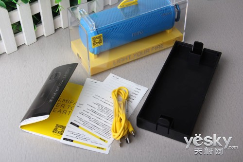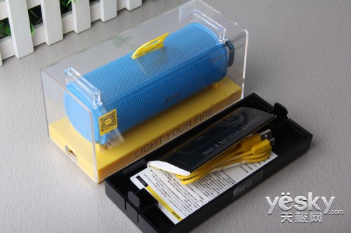 跟大多數(shù)藍牙音箱的包裝不同,Mifa F5藍牙音箱外包裝采用的亞克力透明材質,高檔意味明顯。外包裝分為上下兩部分,上半部采用的透明面殼,下半部是黑色底座。上下兩部分通過左右兩側的卡扣銜接,在前后中間部位有貼紙粘貼。在透明面殼的下方,可以看到一個黃色的基座,音箱就放在這個基座上。