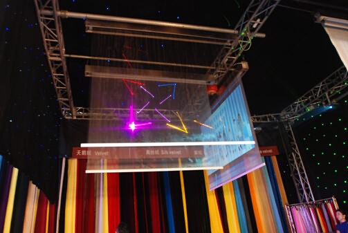 一眼望去佳韻豐展位與其它展位大為不同,色彩繽紛大氣優(yōu)雅。此次展會(huì)佳韻豐攜多款幕布參展,包括天鵝絨、真絲絨、麻絨、金絲絨等幕布。
