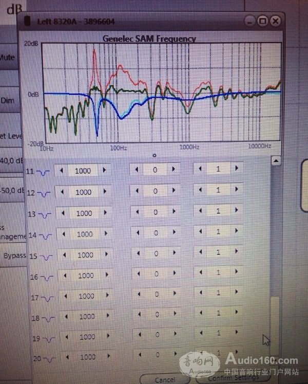 真力全新SAM系列的內(nèi)置DSP芯片支持4段擱架均衡和16點鐘形均衡,能提供高精度的房間響應補償矯正。在這個界面,還可發(fā)送粉噪等測試信號,對校準結(jié)果進行手動微調(diào)。