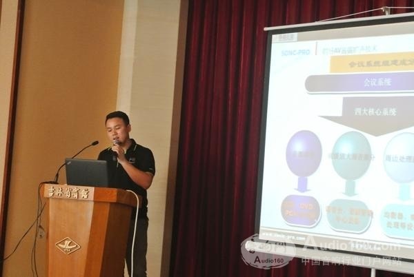我司技術(shù)總監(jiān)尹總作為主講嘉賓向參會人員詳細(xì)地講解了德國SONIC-PRO音響產(chǎn)品的特點(diǎn)和優(yōu)勢,針對本次會議主要推薦的產(chǎn)品包括:全新TF系列音箱、CO炫彩系列音箱、TZ同軸系列音箱、QT鋼琴烤漆工藝系列音箱、多通道數(shù)字功放、MATRIX數(shù)字調(diào)音臺及網(wǎng)絡(luò)音頻處理器、COBRANET數(shù)字網(wǎng)絡(luò)音頻傳輸器等等。