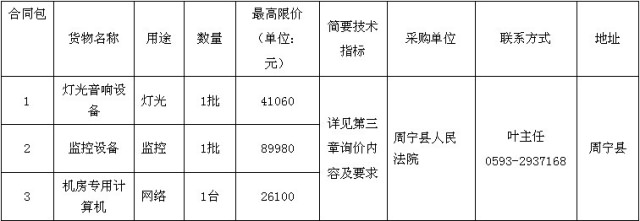 福建省智信招標(biāo)有限公司受周寧縣人民法院委托將對(duì)下列政府采購(gòu)項(xiàng)目進(jìn)行詢價(jià)采購(gòu):
