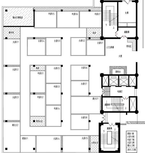 范例A: 實(shí)用面積:690㎡ 包廂數(shù):23間