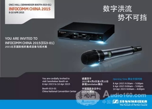 Infocomm China 2015(中國國際視聽集成設(shè)備與技術(shù)展)將于4月8日-4月10日在北京的國家會議中心舉行,Sennheiser將帶著一系列產(chǎn)品出席展會。
