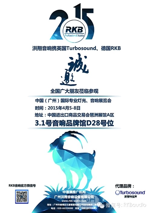 屆時(shí),廣州洪翔音響設(shè)備有限公司將攜英國(guó)Turbosound、德國(guó)RKB品牌音響亮相本次展會(huì),同時(shí)將為廣大朋友展示2015年度最新高端音響設(shè)備。歡迎蒞臨參觀指導(dǎo)。