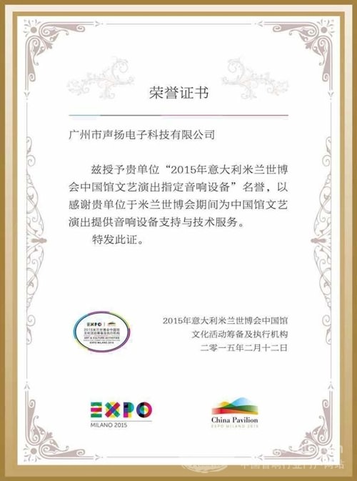 肩負(fù)著米蘭世博會(huì)中國(guó)館文藝演出指定音響設(shè)備的使命,ZSOUND選擇24只VCM雙十寸線陣列音箱及24只U系列專(zhuān)業(yè)音箱,組成13.1聲道全景聲系統(tǒng)出征米蘭,并針對(duì)世博會(huì)成立項(xiàng)目組,負(fù)責(zé)全程跟進(jìn)世博會(huì)的音響設(shè)備籌備事宜,從現(xiàn)場(chǎng)音響系統(tǒng)布置方案模擬到音箱的選用,每一個(gè)環(huán)節(jié)都細(xì)致謹(jǐn)慎,以求世博會(huì)現(xiàn)場(chǎng)ZSOUND能夠跟隨中國(guó)的腳步,展示最出色的姿態(tài)。