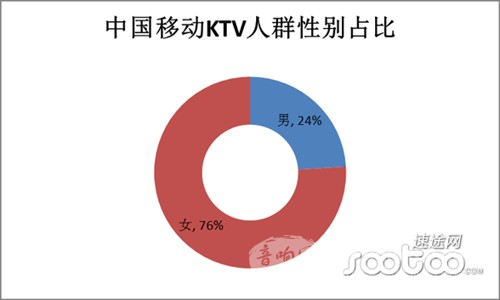 移動(dòng)KTV用戶(hù)群體中,女性群體占比高達(dá)近八成,遠(yuǎn)高于線(xiàn)下的性別比例?梢(jiàn)女性用戶(hù)對(duì)于展現(xiàn)自我靚麗一面的應(yīng)用好感度遠(yuǎn)大于男性用戶(hù)群體。移動(dòng)KTV應(yīng)用恰巧屬于完美展現(xiàn)自我聲音的一款產(chǎn)品,贏的眾多女性用戶(hù)的喜愛(ài)。