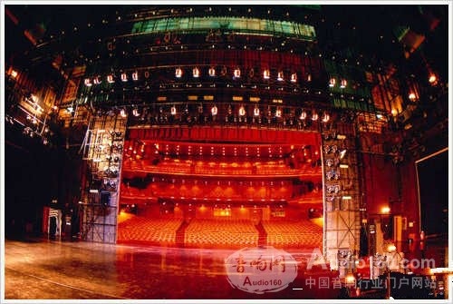 大劇場(chǎng)的擴(kuò)聲系統(tǒng),主擴(kuò)設(shè)計(jì)為左、中、右三組L-Acoustics KARA線陣列音箱各12只,并為其配置了LA8功放15臺(tái)、LA4X功放9臺(tái);補(bǔ)聲音箱,在臺(tái)唇有7只,樂(lè)池前沿8只,觀眾區(qū)分布9只;無(wú)線傳聲器系統(tǒng)采用的是森海塞爾Transmitter SK5200和Receiver EM3732。設(shè)計(jì)方案中,在舞臺(tái)、樂(lè)池和觀眾席中部、控制室外等多處預(yù)留了充足的接口,以備舞臺(tái)流動(dòng)返送或調(diào)音師自主選擇調(diào)音位等特殊需求之用。