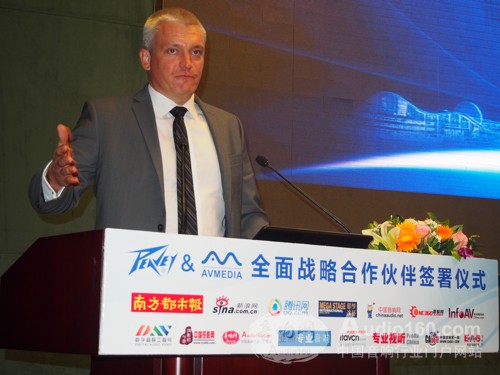 “眾所周知,傳統(tǒng)專(zhuān)業(yè)音頻市場(chǎng)正面臨嚴(yán)峻考驗(yàn),產(chǎn)能過(guò)剩且同質(zhì)化嚴(yán)重,傳統(tǒng)市場(chǎng)趨于飽和,競(jìng)爭(zhēng)日益惡意化。但與此同時(shí),國(guó)家對(duì)文化市場(chǎng)日益重視、城鎮(zhèn)化日益加快、新農(nóng)村建設(shè)的迅速展開(kāi)、人們對(duì)生活品質(zhì)要求日益提高等等也給本行業(yè)帶來(lái)巨大商機(jī)。當(dāng)然,針對(duì)新興市場(chǎng),必須有創(chuàng)新性的、高科技的產(chǎn)品組成完善的系統(tǒng)解決方案,才能加以應(yīng)對(duì)。如何利用美國(guó)Peavey(百威) 50多年來(lái)積累下的豐富經(jīng)驗(yàn)、高端技術(shù),結(jié)合埃威姆及其核心伙伴對(duì)市場(chǎng)精確把握,全面迎接這個(gè)新時(shí)代,既是我們的使命,也是我們的目標(biāo)和理想。” 美國(guó)Peavey(百威)認(rèn)為,自2009年起,與埃威姆已經(jīng)合作7年,埃威姆是Peavey首次與中國(guó)大陸合作伙伴,埃威姆以其堪稱(chēng)完美的業(yè)績(jī)糾正了我們之前部分Peavey人存在的偏見(jiàn),僅僅用了四年的時(shí)間,實(shí)現(xiàn)Peavey中國(guó)市場(chǎng)銷(xiāo)量增加十倍,這被Peavey視為奇跡,是Peavey成立50年來(lái)發(fā)展速度最快的市場(chǎng)。如今,埃威姆已成為Peavey全球最重要、最具實(shí)力的合作伙伴,我們非常愿意并榮幸與埃威姆長(zhǎng)期合作。埃威姆公司對(duì)產(chǎn)品品質(zhì)的鑒定能力、對(duì)新技術(shù)的把握能力、對(duì)各方資源的整合能力、對(duì)市場(chǎng)應(yīng)變能力令我們印象深刻。美國(guó)Peavey將調(diào)動(dòng)我們?nèi)蛸Y源,全面、全力配合埃威姆,爭(zhēng)取讓Peavey這一值得我們美國(guó)人驕傲的品牌在中國(guó)更加輝煌!