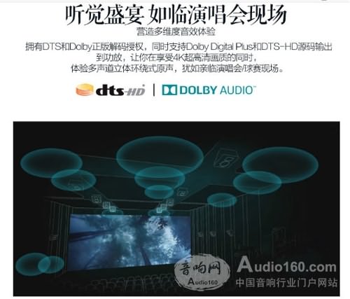 DTS-HD作為一種新一代的解碼技術(shù),能夠使設(shè)備具有處理更為出色的音頻信號的能力,低比特率傳輸時支持更為廣泛的碼流范圍;且還能自動適配帶寬,存儲和網(wǎng)絡(luò)限制。DTS-HD主體音頻能將音頻處理得與錄音原本1比特對1比特的相同。DTS-HD主體音頻處理的音頻能達(dá)到了超高可變比特率——Blu-ray碟達(dá)24.5Mbps和HD-DVD至18.0Mbps。因而能對應(yīng)音頻的全部信息:7.1聲道都達(dá)到96khz/24bit的取樣率和深度,與原來的錄音版本完全一樣。用DTS-HD主體音頻能享受到與藝術(shù)家意圖嚴(yán)格相同的電影和音樂。