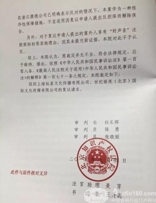 北京知識產(chǎn)權(quán)法院駁回燦星復(fù)議請求,停用好聲音商標(biāo)