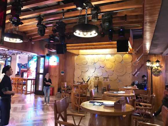 結(jié)合了西餐廳、酒吧、現(xiàn)場(chǎng)樂(lè)隊(duì)進(jìn)行了藝術(shù)的跨越視覺(jué)、聽(tīng)覺(jué)、味覺(jué)的娛樂(lè)體驗(yàn)。