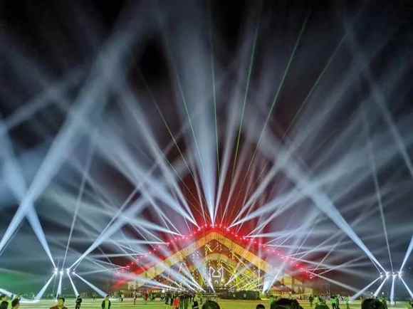 晚會節(jié)目形式多樣,將電音燈光、煙花融為一體,有 燈光秀、煙花匯演、苗族歌舞、樂隊演唱,還有美妙動感的電子音樂。