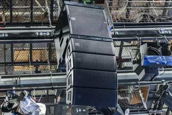 670演播廳選用了Martin Audio 采用蜂巢驅(qū)動技術(shù)的MLA Mini 線陣列揚聲器作為主擴揚聲器,每組MLA Mini 系統(tǒng)由單只15寸低頻揚聲器和4只雙6.5英寸全頻揚聲器組成,單只全頻箱體擁有兩個聲學分區(qū),整組MLA Mini 系統(tǒng)擁有8個聲學分區(qū),內(nèi)置9個DSP 通道和9個功放模塊。