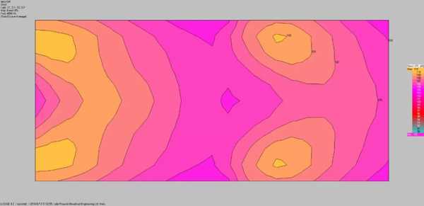 在功放選擇上,我們可以使用CROWN XTi2.5系列來驅(qū)動MRX600揚聲器。500m²報告廳俯視圖(4×MRX625+2×MRX615+2×MRX628S系統(tǒng)):