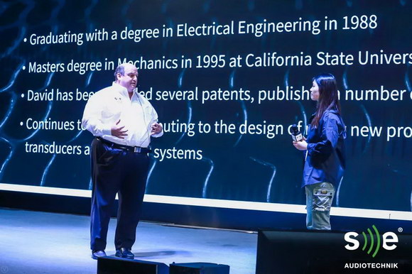 SE聲學(xué)研發(fā)經(jīng)理David Bie則向大家展示了B系列低音所做的各類檢測及實(shí)驗(yàn)結(jié)果,用真實(shí)可靠的數(shù)據(jù)向大家證明SE音箱的品質(zhì)經(jīng)得起時(shí)間考驗(yàn),敢于向客戶作出音箱質(zhì)量承諾!案呖煽啃、高聲壓級、輕重量” B系列低音就是這樣引領(lǐng)著超低音箱革命的潮流。