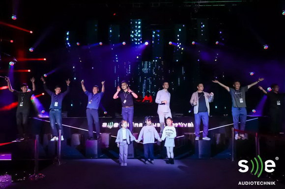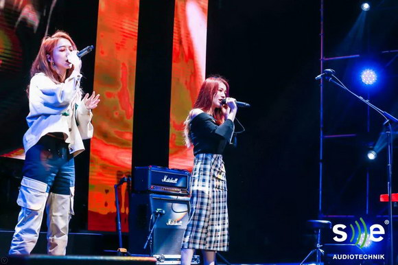 隨后,音樂狂歡活動正式開始。女聲獨(dú)唱的甜美、白貓樂隊(duì)的動感、橙樂隊(duì)的激情、Magic People的活力、DJ的火辣……通過舞臺上方吊掛的32只M-F3A Pro和12只M-F3A Pro FS,以及地面堆放的40只S12 Pro傳遞給了現(xiàn)場的每一位色粉朋友。在炫目燈光的配合之下,SE音箱震撼的視聽效果,不僅讓現(xiàn)場嘉賓沉浸其中,也讓演出者和主持人都贊嘆不已。