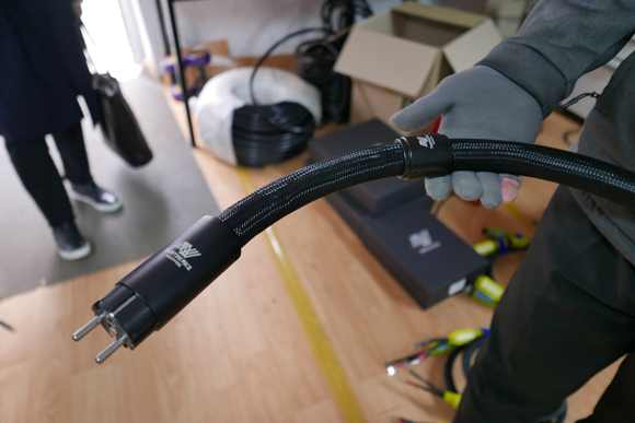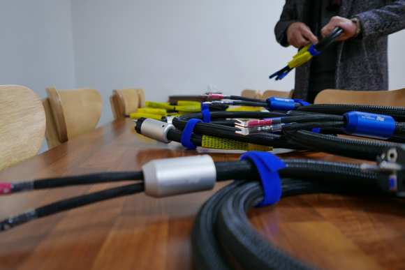 NEOVOX工廠正面,周圍景色迷人 經(jīng)介紹得知,NEOVOX線材的設(shè)計(jì)師也就是品牌負(fù)責(zé)人KIM。其實(shí)KIM是一位有18年線材設(shè)計(jì)資歷的專業(yè)人士,原來(lái)是從事音響及線材的設(shè)計(jì)師,直到前幾年成立了《NEOVOX》品牌做自己的線材。由于有了先前的資歷和技術(shù)積累,線材成品一出,聲音素質(zhì)好,性價(jià)比也非常高,很快就在當(dāng)?shù)氐陌l(fā)燒圈子引起了不小的關(guān)注。KIM經(jīng)過(guò)審視后決定要干就把這件事做到最好,于是又設(shè)計(jì)了一系列的線材產(chǎn)品出來(lái)。談到此時(shí),KIM非常開心的連說(shuō)帶比劃起來(lái),說(shuō)以前設(shè)計(jì)常受品牌方的限制,很多方案并不完美,但也只能折衷處理。現(xiàn)在能夠按他自己的設(shè)計(jì)理念完美的去做一件事情了。(emmm設(shè)計(jì)師不是得裝的很深沉才對(duì)吧,大叔你這完全不對(duì)路子啊。@*@。 其實(shí)交談中可以看出KIM是一個(gè)待人誠(chéng)懇、做事認(rèn)真細(xì)致的工科直男。以往采訪過(guò)一些廠家,一張嘴都是把自己吹上天了,說(shuō)自己的黑科技如何的了不起,講些似是而非、云里霧里的技術(shù)詞匯,聽的頭昏腦脹,有時(shí)我自己都不理解是什么意思。很久沒見到這么誠(chéng)懇且直率的廠家介紹了,人家就是這么低調(diào)和淳樸。很簡(jiǎn)單,設(shè)計(jì)師閑不住又干回老本行了。燒友是有耳朵的,把產(chǎn)品踏踏實(shí)實(shí)的做好,好過(guò)胡亂的吹上天,時(shí)間會(huì)證明一切的。好的東西始終是經(jīng)得起時(shí)間的歷練和燒友的評(píng)價(jià)。 KIM設(shè)計(jì)和工作室在房子的二樓,他說(shuō)這里的風(fēng)景很美,有時(shí)干活累了或思考問題時(shí)可以看看窗外風(fēng)景,二樓能看的遠(yuǎn)一點(diǎn)。緊接著就拿出了幾款線為我們做介紹,目前的線材產(chǎn)品有兩個(gè)系列,“指揮家”系列和“演奏家”系列。每個(gè)系列分別有喇叭線、電源線、信號(hào)線(信號(hào)有平衡和RCA可選)。未來(lái)還會(huì)再出一個(gè)更高級(jí)別系列的線材,現(xiàn)在該系列正在研發(fā)測(cè)試中。 桌上擺的是即將上市的“演奏家”系列產(chǎn)品,導(dǎo)體采用銅鍍銀材質(zhì)。圖片可以看出插頭是藍(lán)色,KIM說(shuō)本來(lái)這系列是可以上市了,但他覺得金屬部分加工還不夠完美,因此上市實(shí)物可能更改為其他顏色。(又一理工直男的表現(xiàn)了,對(duì)產(chǎn)品要求很苛刻啊。起碼實(shí)物我覺得已經(jīng)做的很好了,可KIM還覺得不滿意。)