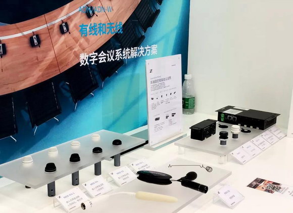 SENNHEISER本次展示了ADN和ADN-W數(shù)字手拉手系統(tǒng)和Speechline Wired有線會議話筒。ADN和ADN-W數(shù)字手拉手系統(tǒng)擁有優(yōu)化的語音清晰度和可懂度,主機內(nèi)置中文操控軟件系統(tǒng),設置簡便并且穩(wěn)定可靠,ADN系統(tǒng)主機能夠進行400個會議單元進行控制,其中包括有線,無線,和有線無線混合等三種模式,是數(shù)字會議的理想選擇。