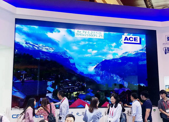 ▲ ACE戰(zhàn)略合作伙伴CREATELED為大家?guī)戆僮兤镣踔抡榧兒,超清智顯的黑科技AirTV1.2 4K LED大屏;魔方屏AirMAGICBOX,針對創(chuàng)意、定制化市場新開發(fā)的一款高端LED顯示屏。