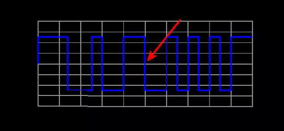 圖3 – 一種數(shù)字波形。信息由轉(zhuǎn)換所攜帶,所以波形輕微的四舍五入并不會(huì)影響數(shù)據(jù)的完整。