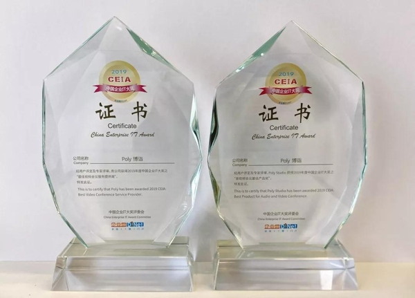 歷時三個月,經(jīng)過兩輪角逐,最后經(jīng)過CIO評委會進(jìn)行評選,Poly博詣 脫穎而出,榮獲2019年度中國企業(yè)IT大獎之“最佳視頻會議服務(wù)提供商” 和 “音視頻會議最佳產(chǎn)品獎” 兩項大獎!