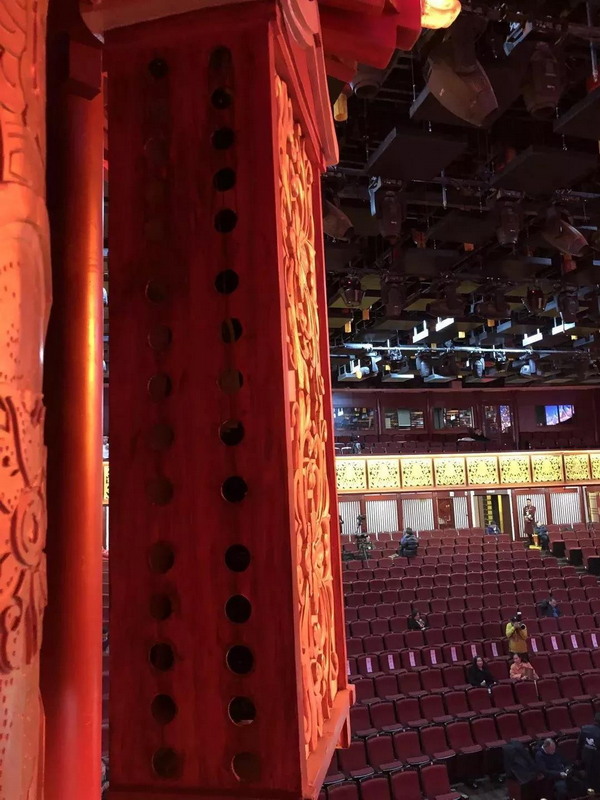 經(jīng)過導(dǎo)演團隊的精心策劃與設(shè)計,改造后的演出舞臺突破傳統(tǒng)的布光方式,將視屏影像與音響燈光糅合為整體。324個大紅燈籠高高掛起,近300只隱藏安裝“沉浸式”音響系統(tǒng)與58塊LED矩陣屏共同營造了奇幻震撼的視聽效果。劇場前大廳經(jīng)特殊設(shè)計,觀眾席可以180度融入復(fù)合式表演幕墻體驗360度“沉浸式”震撼音響效果。