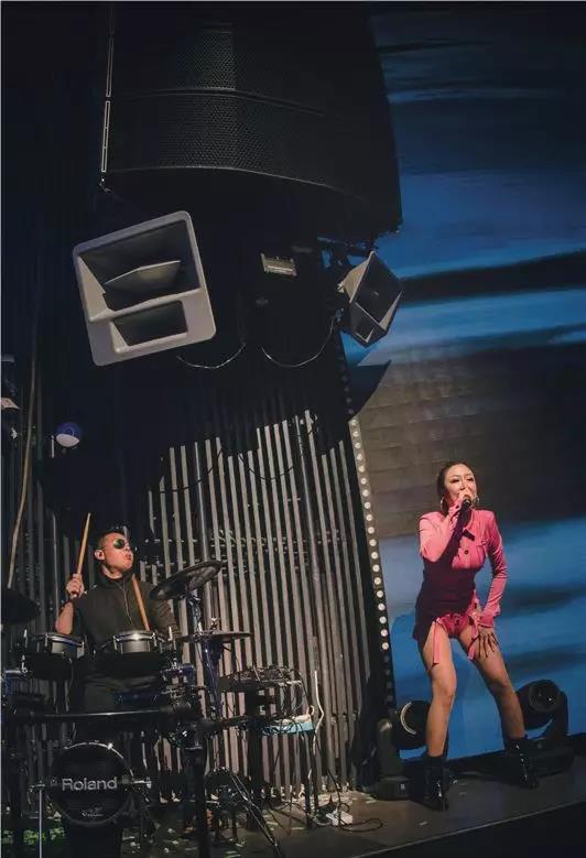 DJ 臺下方采用3x3堆疊的方式安裝了九只V221超低揚聲器