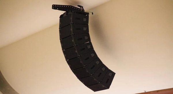 由于原聲橋結構和外觀裝飾無法進行改動,安恒利設計團隊在參考國內(nèi)外著名演出場館揚聲器布置方式,以及在學校領導具前瞻性思想的共同指引下,大家一致決定采用明掛揚聲器安裝方式。該安裝方式能把聲橋對聲音的局限影響降為零,觀眾聽到的是最真實的揚聲器聲音。并且對于挑臺底下容易影響觀影感覺的揚聲器,特意定制了白色噴涂,與裝修融為一體。
